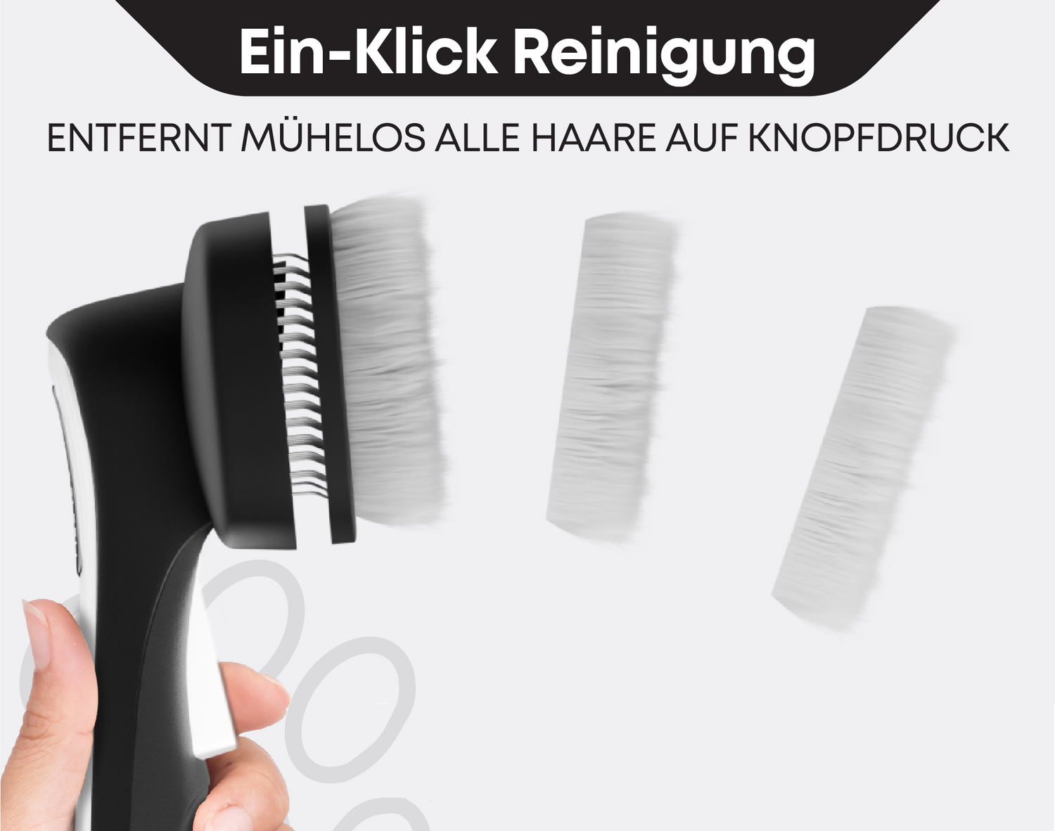 Der rutschfeste Griff sorgt für eine angenehme Handhabung, während die One-Klick-Reinigungstaste das Entfernen von Haaren schnell und einfach macht. So wird die Fellpflege zum Vergnügen!